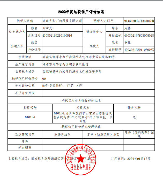 企業(yè)納稅信用等級(jí)報(bào)告: