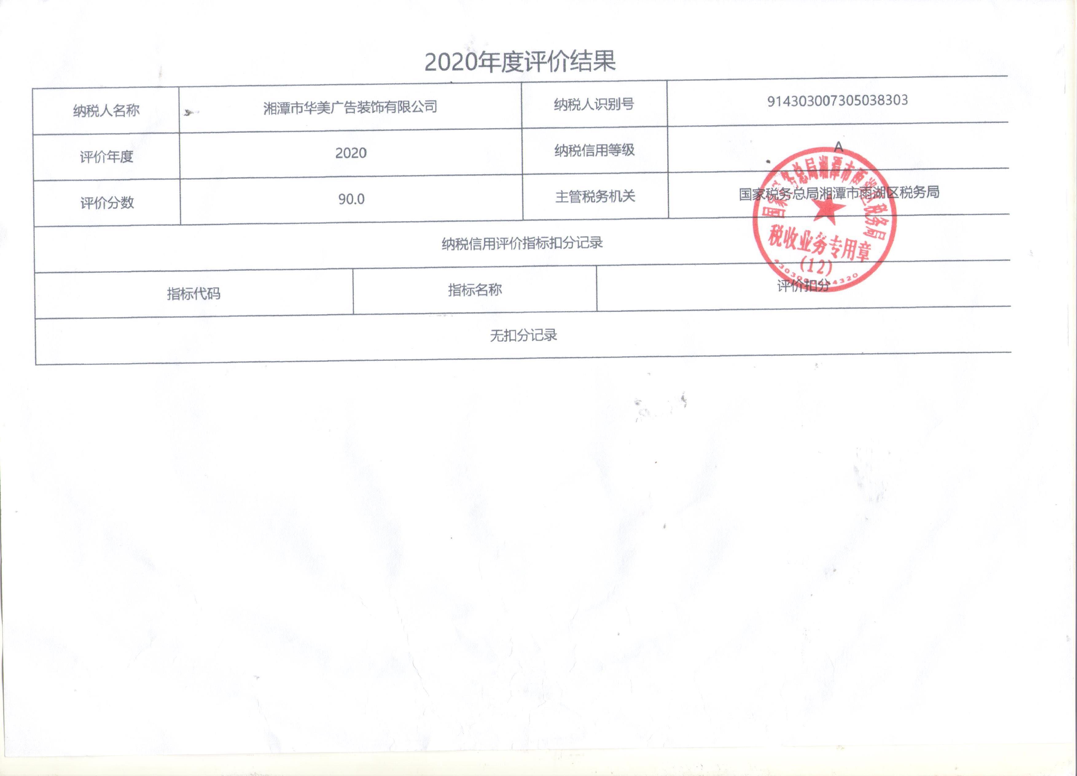 企業(yè)納稅信用等級報告: